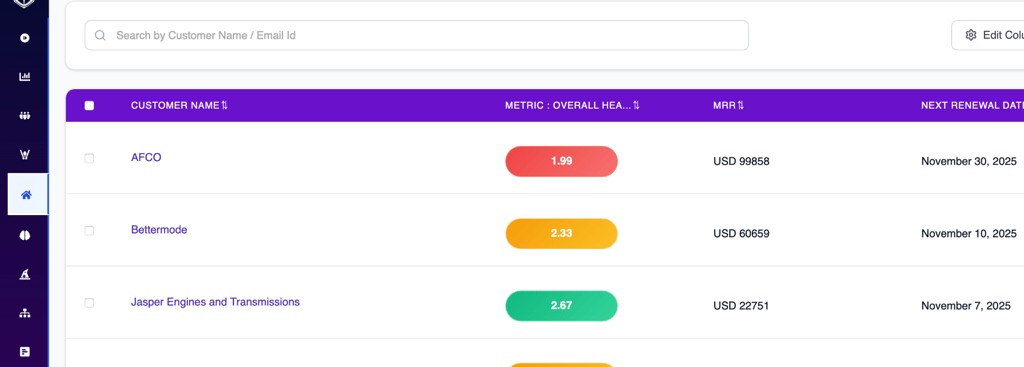 Identify at-risk accounts early by monitoring various customer health indicators, enabling proactive engagement and intervention to prevent churn or dissatisfaction.